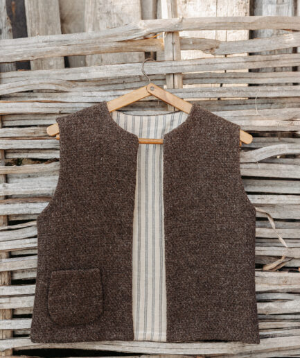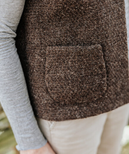 Su tejido texturado, con huecos grandes, evoca las marcas que dejan las pezuñas en el barro húmedo de las fuentes, allí donde se cruzan caminos y aguas. Bolgues, el pueblo cercano a mi casa-taller, toma su nombre de buelga, palabra asturiana que nombra esos lugares donde la tierra guarda la huella del paso, da nombre a una pieza que celebra la alianza entre materia, paisaje y memoria rural.